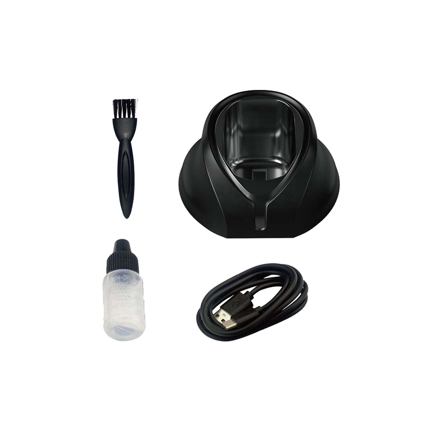 Base de carga y cable USB para recargar cómodamente.